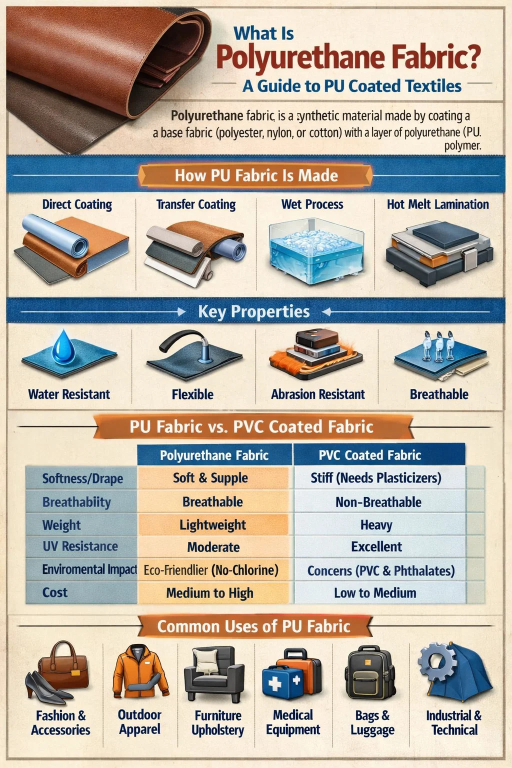 همه پارچه های پلی اورتان یکسان نیستند. این اصطلاح خانواده وسیعی از مواد را در بر می گیرد که با زیرلایه پایه، ساختار پوشش و مشخصات عملکرد مورد نظر متمایز می شوند.
